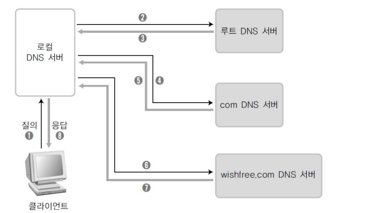 1. hosts파일에 정보가 없으면 시스템에 설정된 DNS서버인 로클 DNS서버에 질의한다.